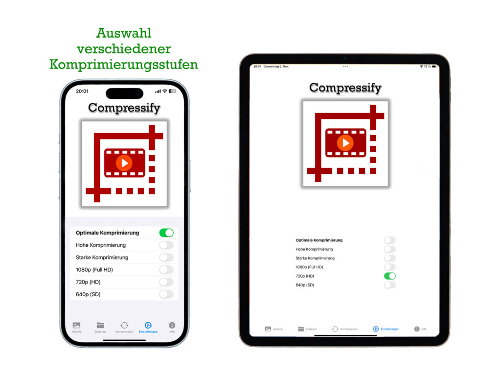 Meine ultimative Lösung für die optimale Videokompression auf iOS-Geräten! Mit Compressify habe ich eine App entwickelt, die dir die volle Kontrolle über deine Videoinhalte ermöglicht und es dir leicht macht, sie anzupassen, ohne an Qualität zu verlieren.